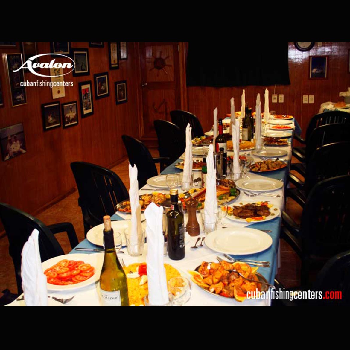 The chef on La Reina, as on our other yachts, goes all out to provide delicious fare for our guests. Dinners are seafood oriented with fresh mutton snapper and grouper being readily available. Other traditional Cuban entrees like chicken and pork are also part of the regular weekly menu. It is very easy for us to prepare vegetarian meals on request and the chef serves a variety of salads and fruits each day. Everyone looks forward to the desserts like our famous Cuban flan, and delicious rum cake.