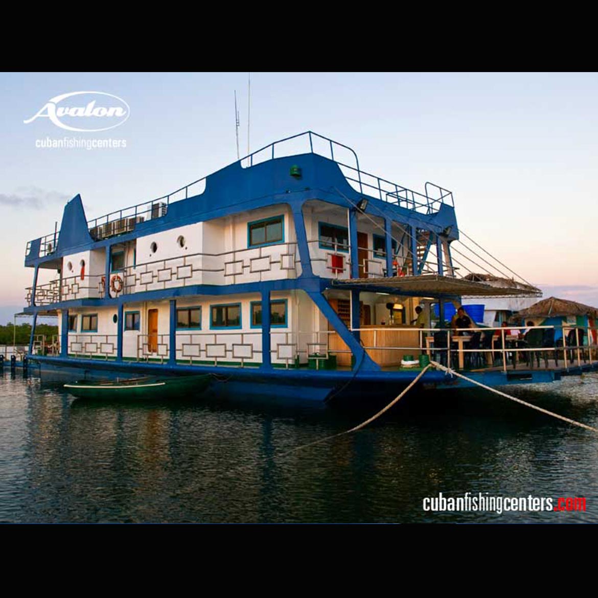 While you are our guest in Los Jardines de la Reina, accommodations are provided primarily on 3 large live-aboard boats or on our original 110-foot double deck houseboat, the Tortuga, the large double-decker floating hotel. The Tortuga functions as a floating hotel with seven guest cabins that accommodate two anglers each. The Tortuga is a massive, steel houseboat that is permanently secured in a small, protected channel of a big island, so that it never moves, regardless of bad weather or wind. It is extremely stable and level at all times so there is never any chance of guests getting seasick.